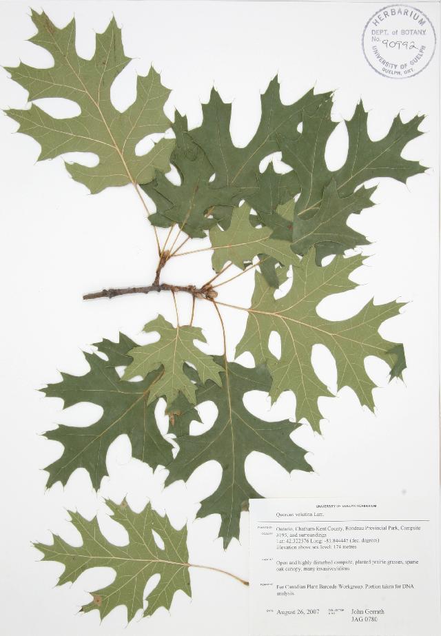 images representing specimens of Quercus velutina