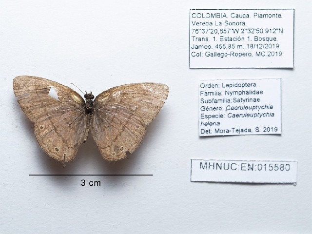 Caeruleuptychia helena {species} - Arthropoda; Insecta; Lepidoptera; Nymphalidae; Satyrinae; Satyrini; Caeruleuptychia;